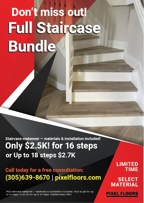 Full staircase makeover — materials & installation included. Only $2.5K for up to 16 steps, or $2.7K for up to 18 steps. Limited-time offer!